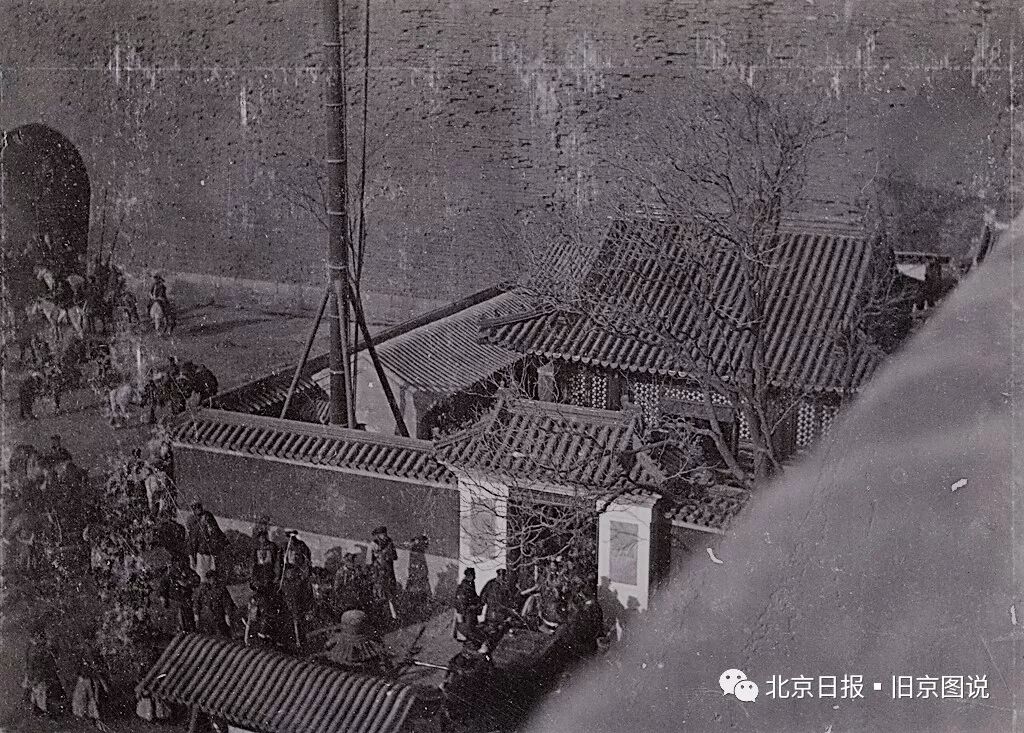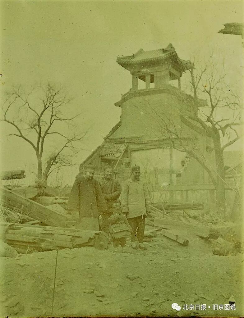 擅长摄影的蒂格森,用手中的照相机记录下北京城这段暗无天日的日子。在他的镜头下,贡院考棚损坏大半,乾隆皇帝敕建的清真普宁寺,几乎成为一片瓦砾,只有寺中“帮克楼”幸存。更令人惊奇的是,蒂格森在景山万春亭向北拍摄的照片中,北城主要建筑都在,地安门却荡然无存。这是人们第一次从影像资料中得到实证:庚子年后,地安门被破坏损毁。此前,官方文献中从未出现过地安门毁于庚子之变的记录。笔者反复查阅资料,仅在金启宗先生的著作《北京满族》里看到过一点信息:据曾经守卫地安门的金启宗外祖父勒贺回忆,日本兵用大炮将地安门轰塌。蒂格森拍摄的这张照片,清楚地呈现了被轰塌的地安门遗址,同时也佐证了金启宗先生的记录,为研究地安门的变迁提供了非常重要的影像资料。