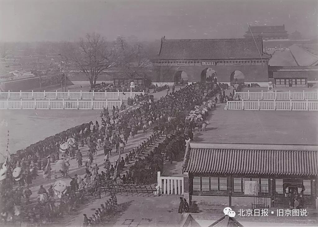 1902年1月7日,慈禧和光绪“两宫回銮”,蒂格森用相机记录下两宫仪仗通过大清门回宫时的影像。
