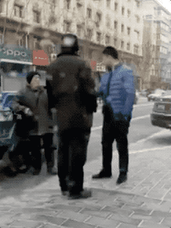 爷爷感动得当街下跪叩谢,车主见状,忙上前把他扶起。
