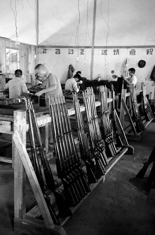 1950年,台湾,工人生产使用美国弹药的日式步枪。