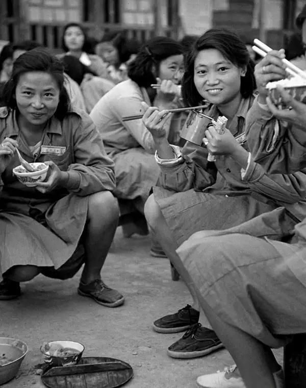 1950年,台湾,接受后勤服务培训的“少女训练团”的年轻女孩在就餐。