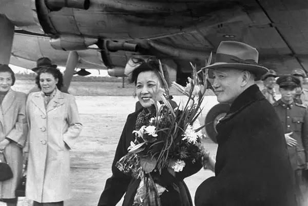 1950年1月,宋美龄离别蒋介石13个月后抵达台湾机场,蒋介石到机场迎接。