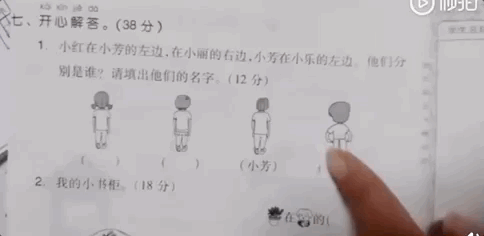 辅导儿子写作业,题中问小芳右边的叫什么。儿子非说叫强强。