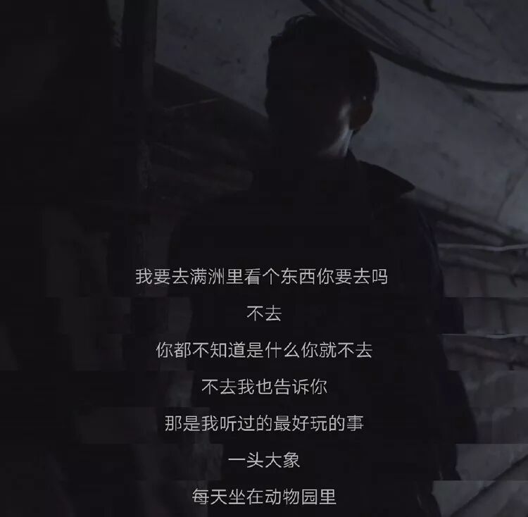 “明明只差一点,前面就是光明了。”他们都说得对,对于世上很多人来说,压力和痛苦,不过一个“熬“字,过去了就好;但胡波不同,压在胡波身上的,是那头“大象”;电影里,那片荒芜的天空和凌乱的大地,让人想起作者那张苍白的脸;隐约中,我仿佛听到他很远的地方喃喃自语:“那是头大象,很重的。”