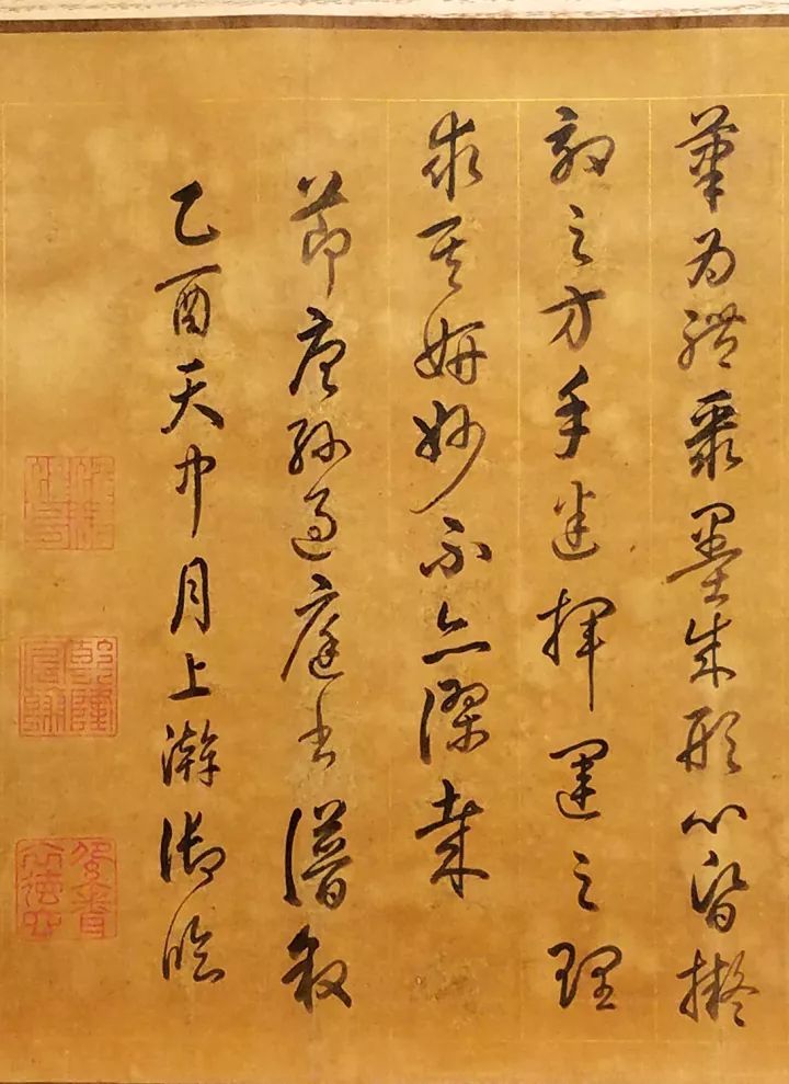 好好的怀素书法,突然冒出一个大印章,咣当盖在两行字上面了。