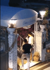 一个阴雨绵绵的下午,一只小猫困在了雨棚顶上,蜷缩着身子,害怕得不敢动弹。雨棚下有两个小男孩,始终伸着双手,尝试接住它。无奈,它很害怕,一直踱步哀嚎,不敢往下跳。