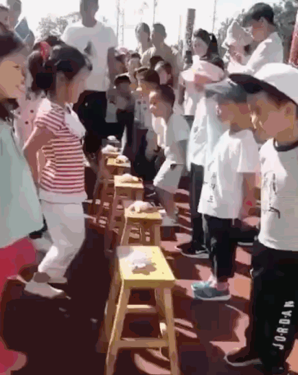 学校组织课间游戏,要抢凳子上的“小兔子”。男孩更快一点,不过,轻轻看了女孩一眼,就松手了。