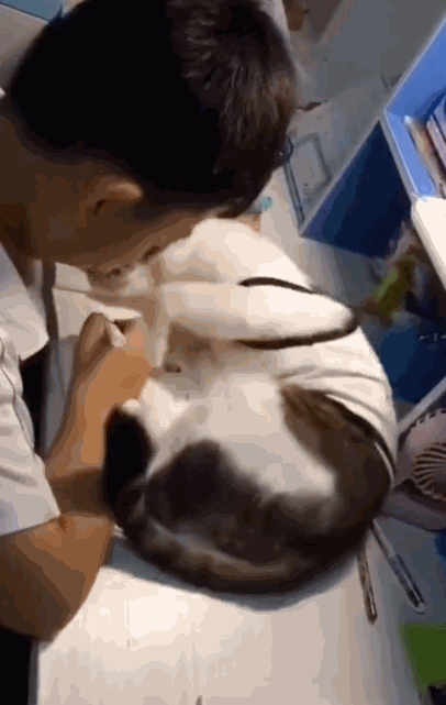 傲娇任性的“主子”赖在作业本上不肯走,小男孩温柔地轻轻拨开喵咪的小爪子,怕折了它,又怕吵醒它……