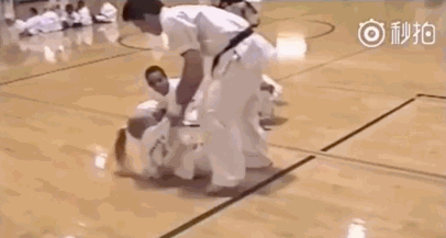武打官里教练为帮女孩训练逃脱,假装袭击她,两人扭打在一起好一会儿。远处一个不知情的小男孩,以为教练在欺负女孩,“啪嗒啪嗒”跑过来,对着教练屁股就是一拳。