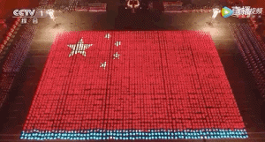 上一秒灯牌闪烁,星光熠熠。下一秒就演变成五星红旗。