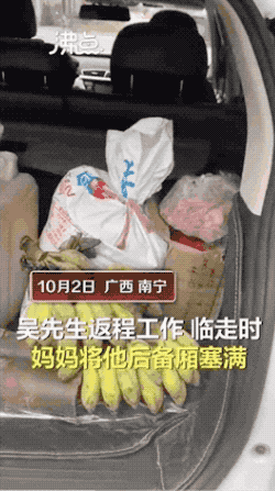 今年国庆小长假,不少人晒出了“妈妈给装的行李箱后备箱”。