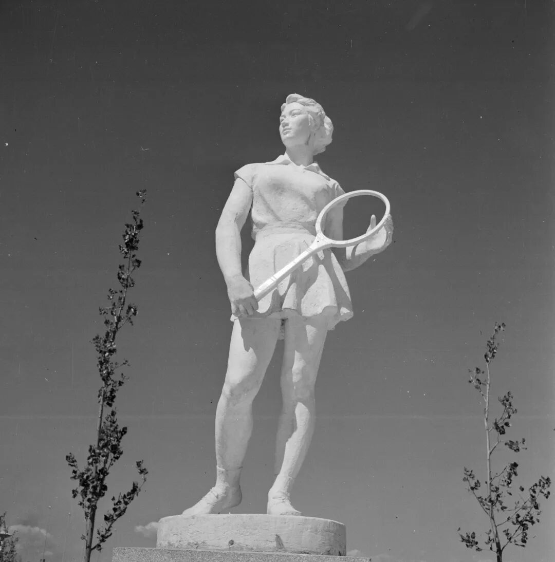 北京工人体育场雕塑之一——网球运动员 冯文冈/摄