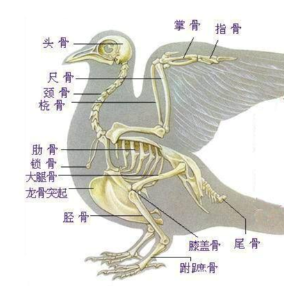 因为生存需要,鸟类有着强大的桡尺骨支撑着翅膀在天际飞翔,大腿骨与胫骨则支撑鸟类栖息或步行。