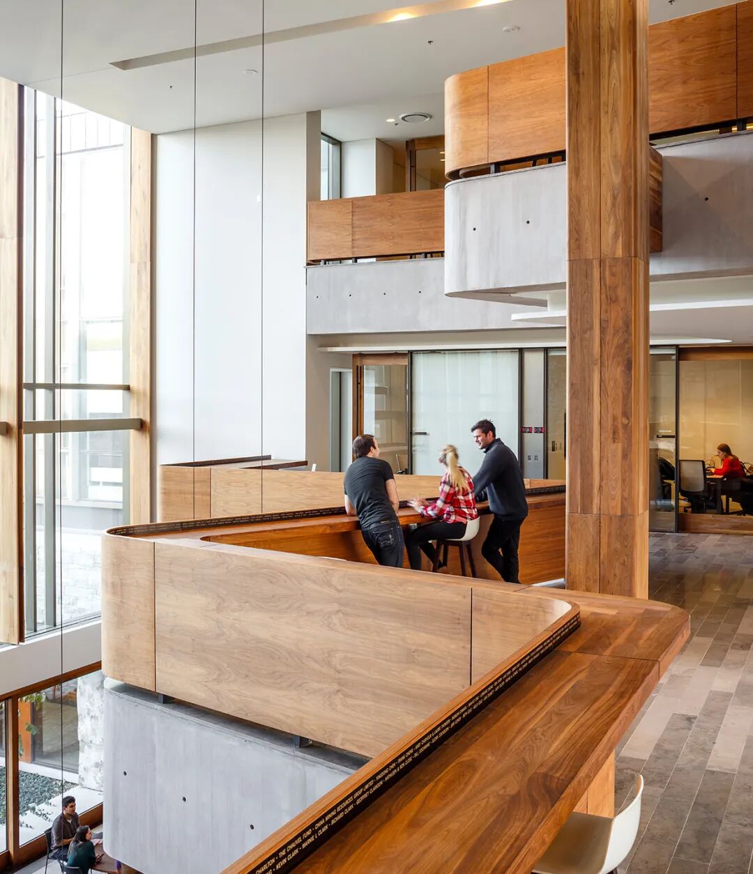 艾维商学院的院校,以及食堂设计,来自著名工业设计师 Hariri Pontarini,于2013年完成。整个设计非常现代化,凸显了商学院该有的效率和简约,整个建筑结构由石头、混凝土和玻璃等材料铸成。