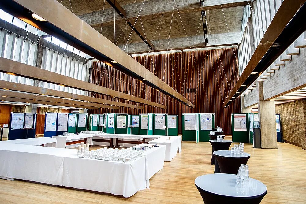 大厅一侧连接东餐厅,另一侧连接中庭。大厅可容纳 500 人,天花板很高,木镶质感板墙。非常适合举办各种活动,包括晚宴和招待会。