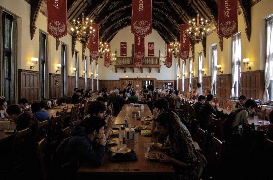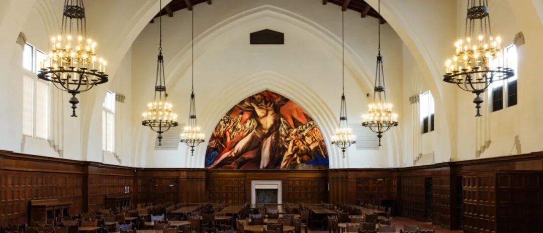大厅远处墙上的普罗米修斯大型壁画,由墨西哥壁画家何塞•克莱门特•奥罗斯科 (Jose Clemente Orozco) 绘制,描绘了一个赤身的男子似乎举起房间的拱形天花板。在充满艺术氛围的餐厅中,学生可以享受自助餐,定制套餐以及各种国际美食。