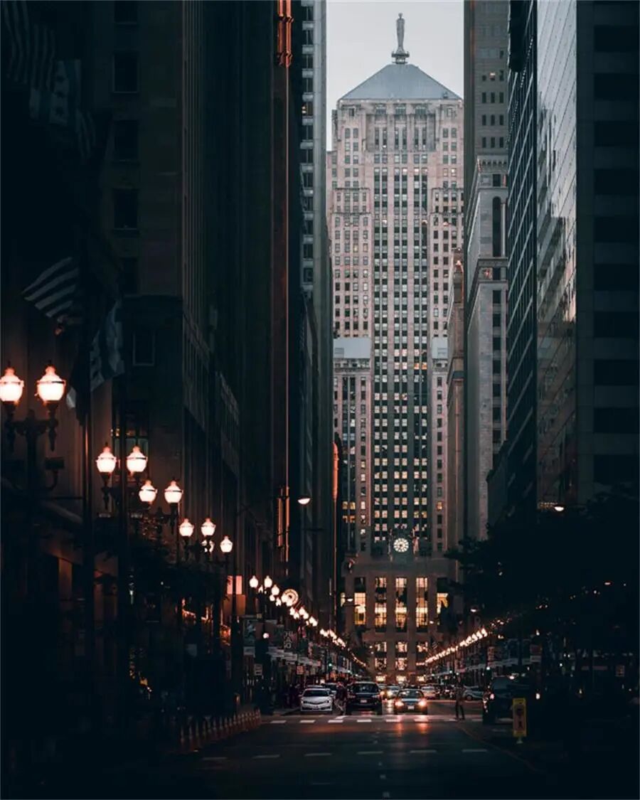 芝加哥的街景,尽头的芝加哥期货交易大楼是世界上主要的农产品交易所。