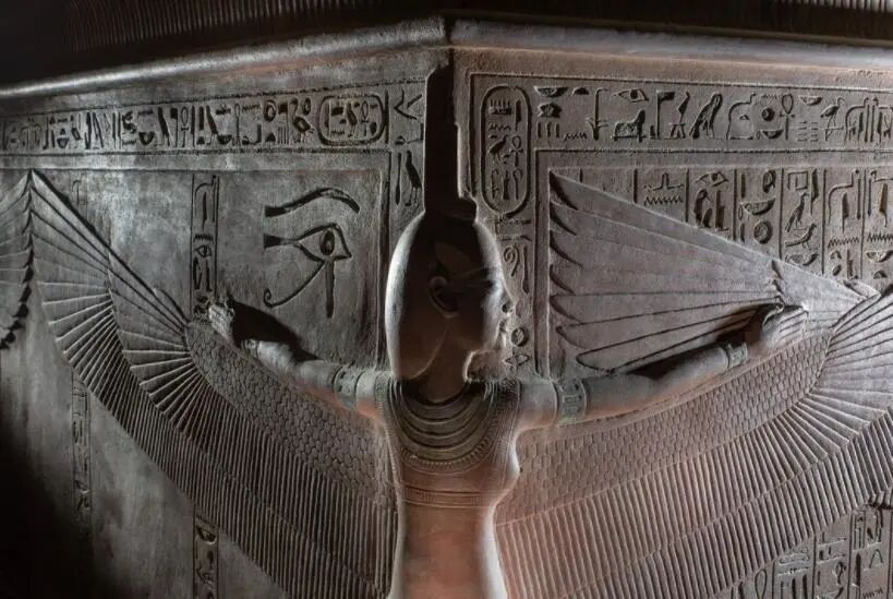 埃及法老墓中的石棺,每个角落都有一位女神展开翅膀牢牢地守护。