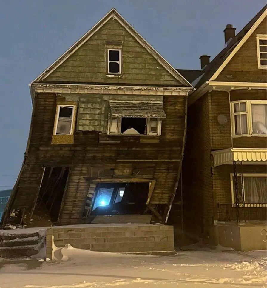 风不可能这么大吧?那就感受一下,纽约州这栋被风吹变形的房子。
