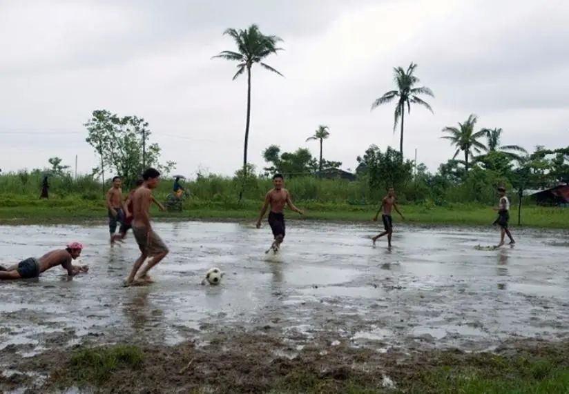 缅甸仰光的野球场,看样子中国男足跟缅甸比赛时,如果下雨就更不好踢了。