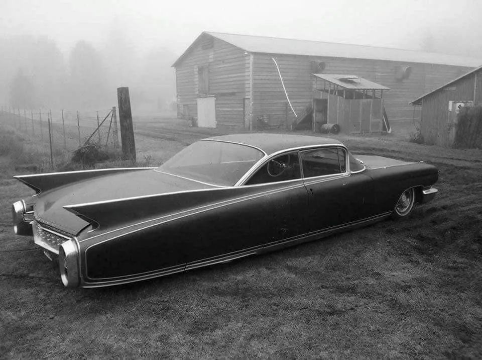 60年代的凯迪拉克,棺材般的外形搭配迷雾笼罩的氛围感,显得极其诡异。