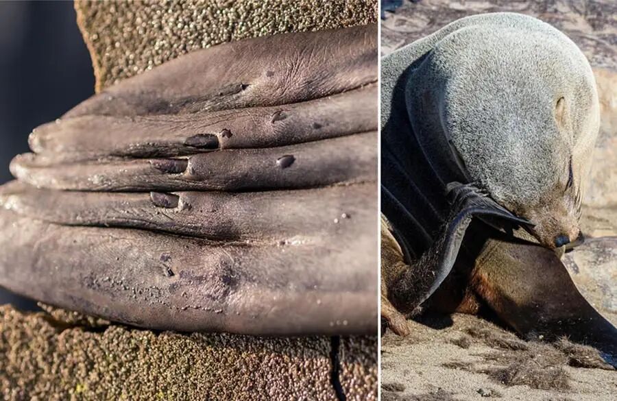 海狮的脚指甲,指甲生长的位置用人类的眼光来看,显得极其怪异。