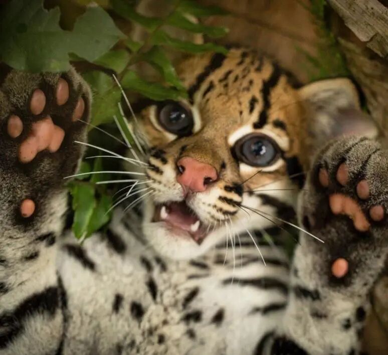 秘鲁可爱的豹猫,身体上的斑点很少连成垂直条纹,也可以叫斑点豹猫。