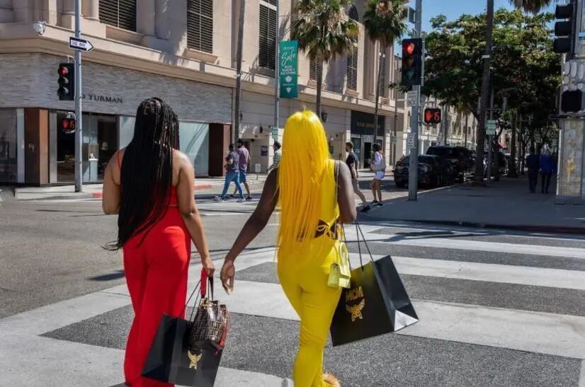 洛杉矶比罗迪欧大道,两位黑人妇女的打扮充满个性、鲜艳夺目。