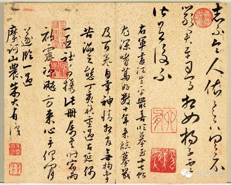 明朝朱大有草书册页欣赏《临十七帖册》。十二开,每开均29.2×35.9cm。凡九十九行,每行字数不一,共六百六十一字。《石渠宝笈三编》著录。台北故宫博物院藏。