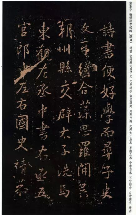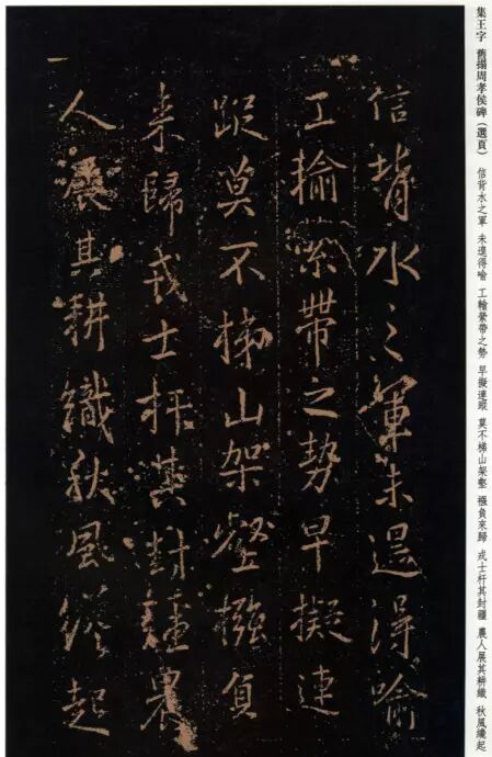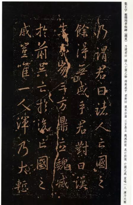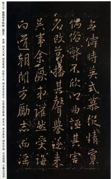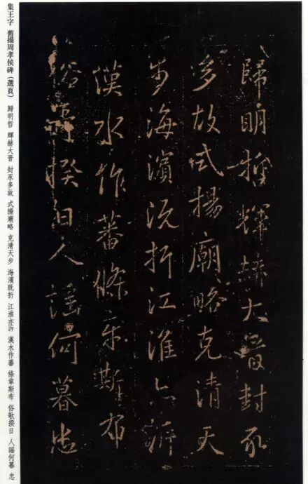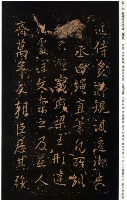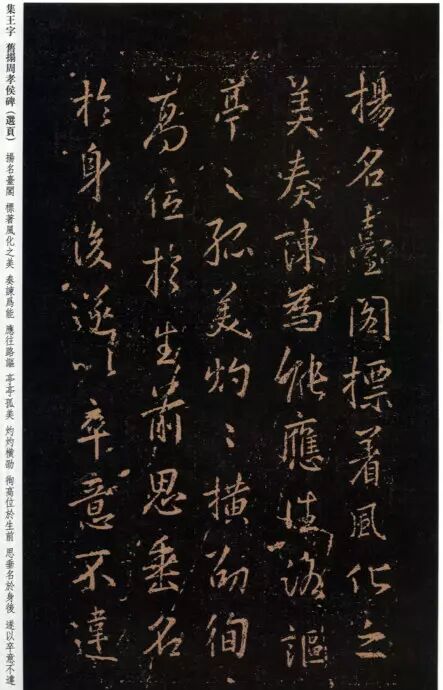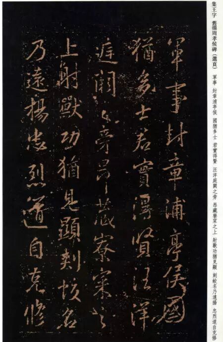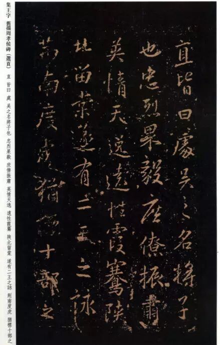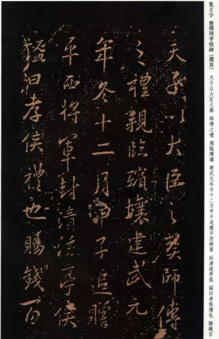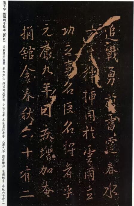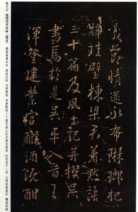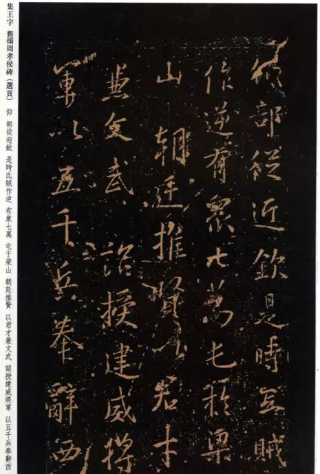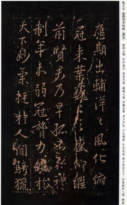 现存江苏宜兴周孝侯庙,碑上题款标明由西晋文学家陆机撰文,集右军将军王羲之书,唐元和六年义兴县令陈从谏重立。据《宜兴县志》记载,明嘉靖年间,宜兴遇水灾,粮仓被淹,周王庙曾作粮仓。后因洪水泛滥,粮食腐烂,蒸蚀了石碑,字多漫漶,可辨识字仅三分之二。此旧拓本所有字迹清晰可辨,故可知其所拓时间至少早于明嘉靖,可称为此碑拓的最善本。
