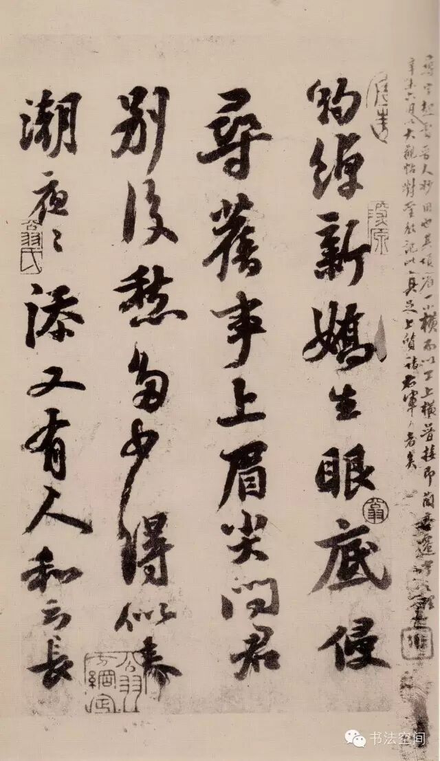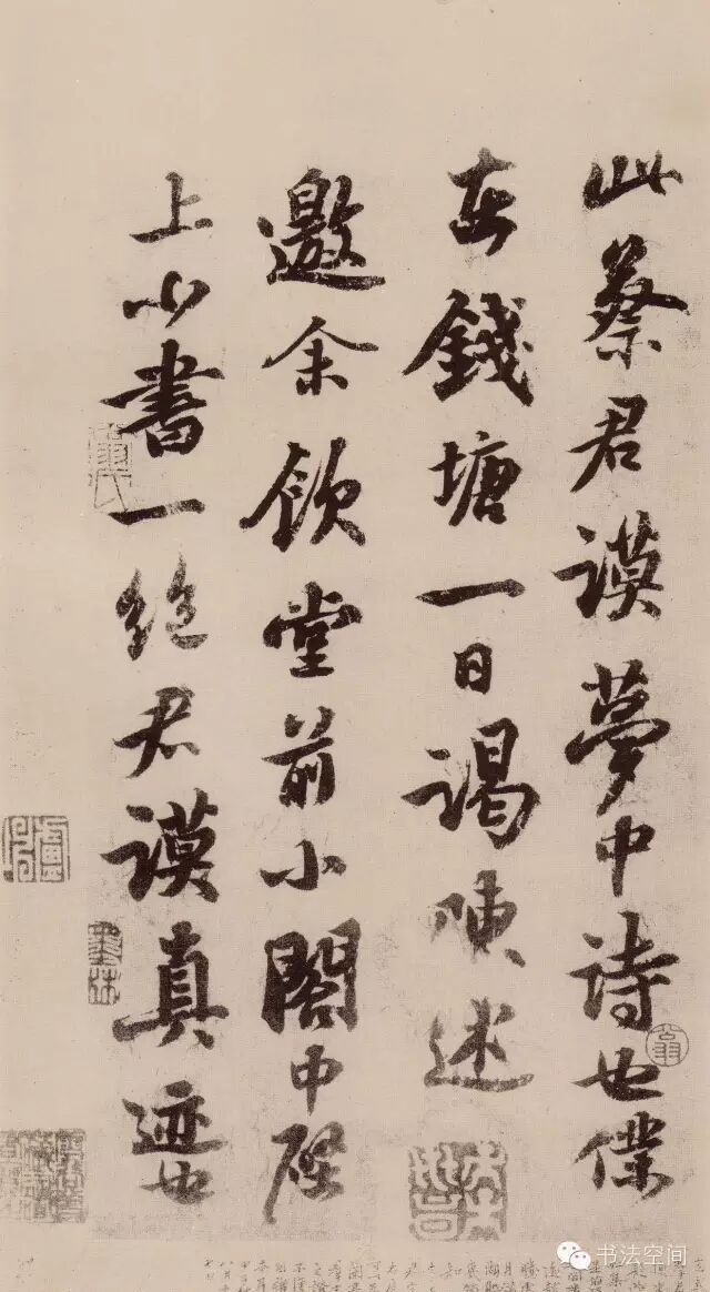 “天际乌云含雨重,楼前红日照山明。嵩阳居士今何(在),青眼看人万里情。”此蔡君谟《梦中》诗也。 仆在钱塘,一日谒陈述(古),邀余饮堂前小合中。壁上小书一绝,君谟真迹也。“绰约新娇生眼底,侵寻旧事上眉尖。问君别后愁多少,得似春潮夜夜添。”又有人和云:“长垂玉筋残妆脸,肯为金钗露指尖。万斛闲愁何日尽,一分真态更难添。”二诗皆可观,后诗不知谁作也。
