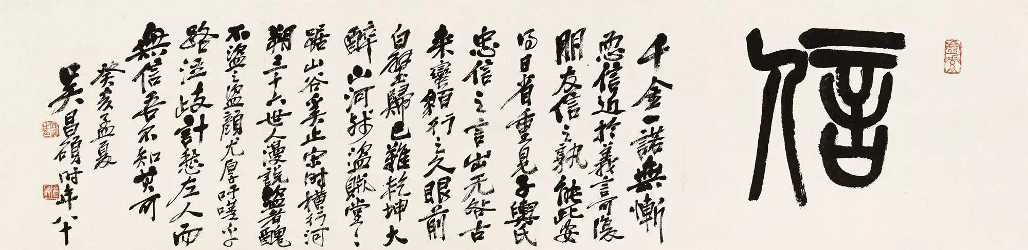 古今书法家尚来重视字外功夫,宋·陆游说:“汝果欲学诗,功夫在诗外。”学书亦然,明·董其昌说:“读万卷书,行万里路,胸中脱去尘浊,自然丘壑内营。”清·杨守敬说:“学富,胸罗万有,书卷之气,自然溢于行间。”因为书法作品是书家渊博的知识、高深的修养、娴熟的技法的结晶,所以,没有一定的学识修养,是无法创作出上乘之作的。学识深,意气平和;学识高,胸怀豁达;学识广,联想丰富。凡是卓有成就的书家,都是学识丰富深广的文人、学问家。识广方能才高,才高方能创作出“书味” 。古代的王羲之、颜真卿也好,近代的吴昌硕、于佑任也好,当代的启功、沙孟海、欧阳中石也好,都是学识深厚,修养颇高,独树一帜的大学问家。书品人品,人所共仰。