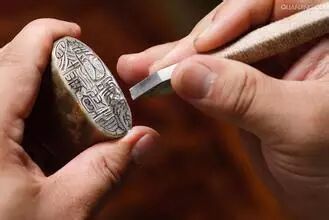 磨印石开始可在废砂纸、水泥地上磨,然后再用砂纸磨至细洁为度(可备铁砂、水砂粗细不同的两种)小镜子用来反照印文。