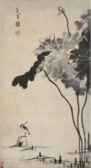 八大山人的荷花不是春色娇艳、欣欣向荣的鲜花,而是“溅泪”之墨花,是残叶败荷,一如他一向的画风,凄凉寂寞,冷意逼人。