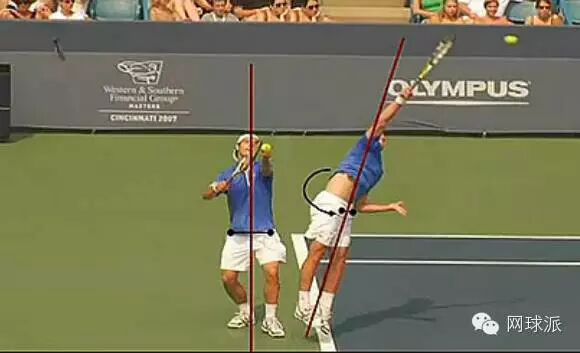 击球后,身体应该进入场内。而很多人几乎是在原地击球,甚至击球后往后退。这都说明抛球太靠后了(二发抛球在头顶位置,要靠后一些)。击球后身体往左偏或往右偏,都是因为抛球没抛好。