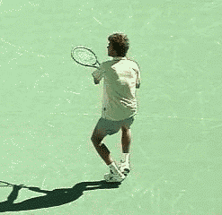 初学者击球最大的问题就是不会转肩,或者叫不会转体,不只是初学者,有些打了几年网球的人也是如此,他们击球时只是在挥动手臂而已,身体就象是一堵墙壁似的一动不动。你叫他转动肩部,扭动腰部,他也只是将手臂挥动得更快而已。这样做不仅打不好球还会带来很严重的伤病。