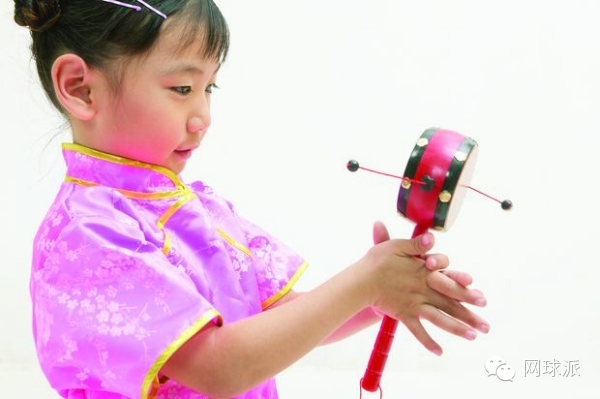 当你转动那面鼓时,鼓两旁的拴着的小球也会跟着转动;你将鼓转得越快,小球也会转得越快;把你的身体当作是那面鼓,你的手臂是球,当你转体时,你的手臂也会跟着转动;你的手臂越放松,就会转得越快;你的身体转得越快,你的手臂也就挥得越快。手中握着的那根棒就是动力的来源,也就是网球击球时的蹬地和转腰。