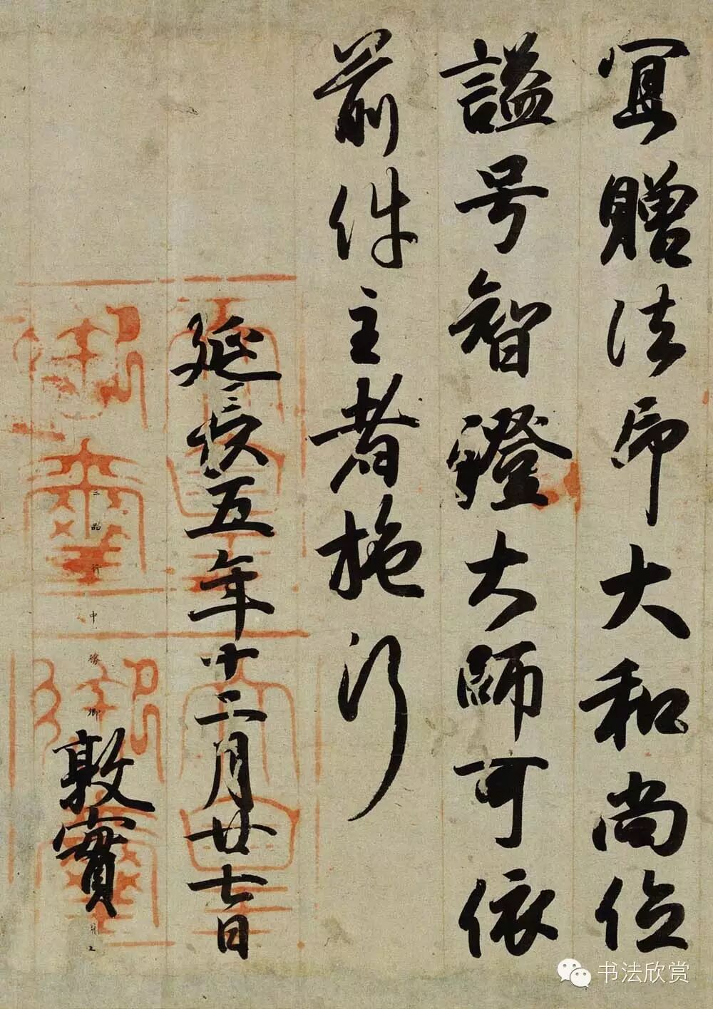 日本小野道风书法赠法印大和尚位并智证大师谥号勅书