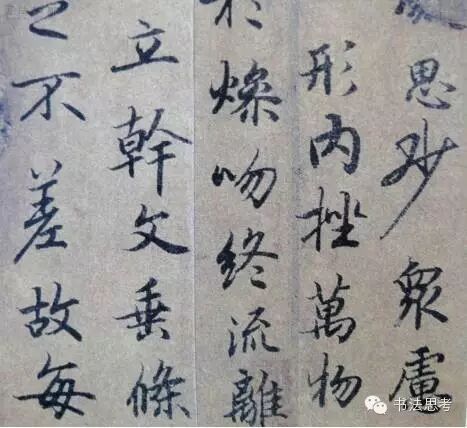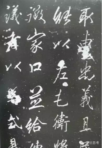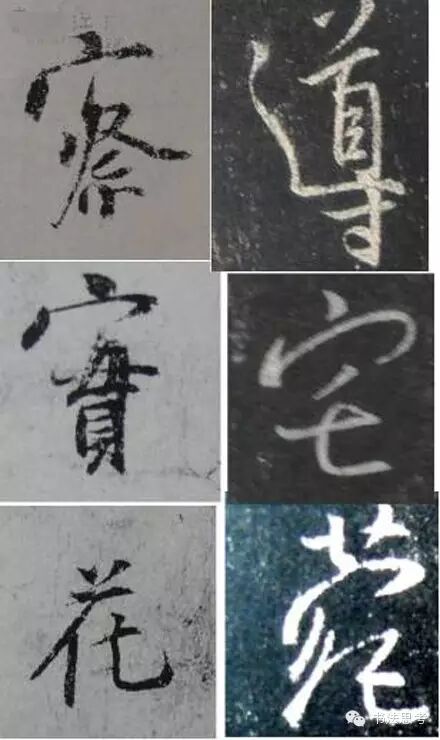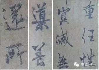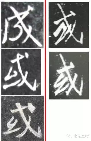 李邕有些字明显出于右军。取斜势求险绝,也来自于王字李邕有些字明显出于右军。和王字比较,李笔下铁钩银画,笔力雄健,其结字多取斜势,开张雄肆。然多偏于此规律,不求过多字形变化。所谓“右军如龙,北海如象”指其字形之开张,笔势之劲健。然终究有象,法度有余,变化未尽。