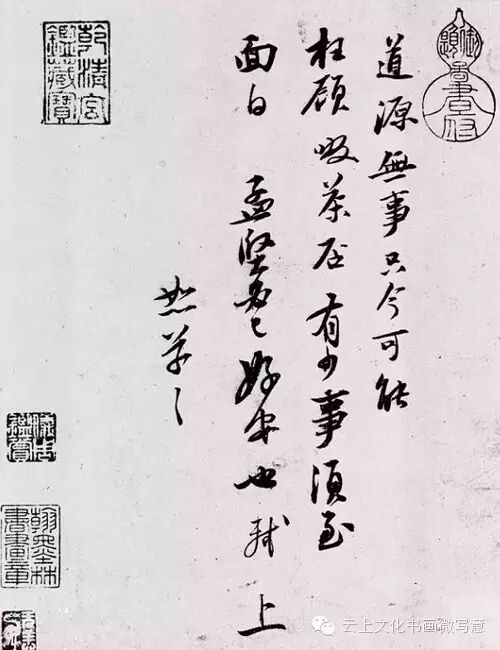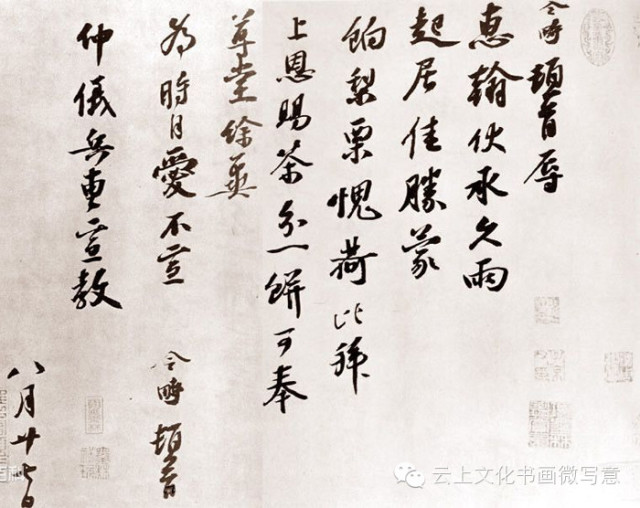 《精茶帖》也称《暑热帖》、《致公谨帖》,藏于故宫博物院,该帖亦入刻《三希堂法帖》其文曰:“襄启,暑热不及通谒,所苦想已平复。日夕风日酷烦,无处可避。人生缰锁如此,可叹可叹…”