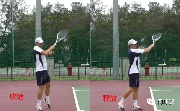 想象你在击球的瞬间“差一点”就把球拍扔出去的感觉——意味着你要放松握拍和小臂肌肉。多数初学者都会在击球的瞬间收缩肌肉,紧握球拍——这跟流畅高效的击球诀窍正好相反。你应该感受到释放,感受到失去控制——只管朝着对面场地中央打,不必担心出界。当你逐渐习惯释放而不是收缩时,你会发现全身的各个部分的发力可以自然地链接在一起,最终传递到网球上。你会发现网球原来如此轻松。