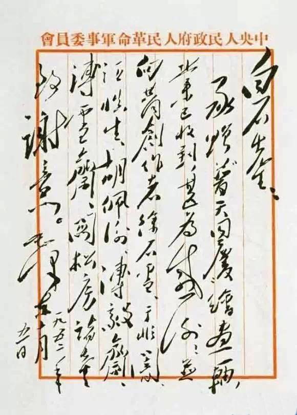 1952年10月5日 毛泽东主席写给齐白石老人的感谢信