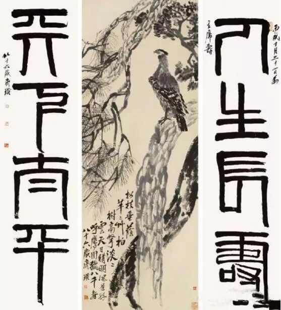 《松柏高立图· 篆书四言联》