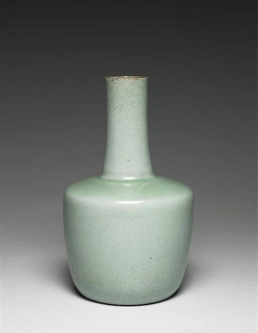 宋 - 汝窯 粉青紙槌瓶 紙鎚瓶形制如造紙打漿時所用槌具,故名