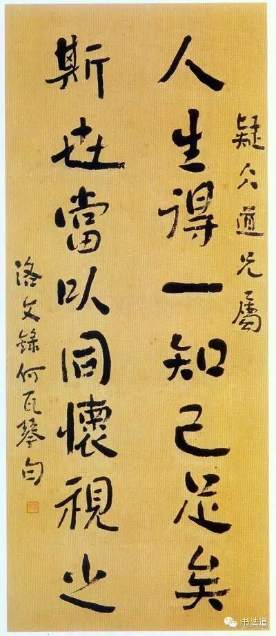 录清人何瓦琴(何溱,字方谷,号瓦琴,浙江钱塘人。工金石篆刻,著有《益寿馆吉金图》。这副对联是他集兰亭禊帖的字,录入所著《烟屿楼笔记》中)“集禊帖字”的联句相赠:“人生得一知己足矣,斯世当以同怀视之”上款为“疑仌道兄属。”“仌”是“冰”字的古文。“凝”为瞿秋白的一个笔名。下署“洛文录何瓦琴句。”“洛文”是鲁迅的笔名之一。