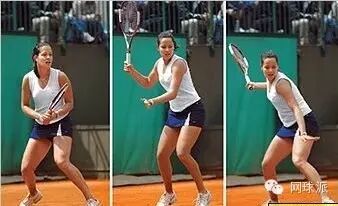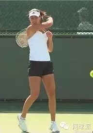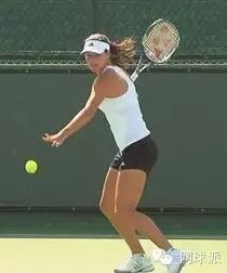 这个步伐就是上图伊万所示,在往前挥拍前,就上步,将身体重心移到前脚,整个挥拍击球动作是在前脚完成的。