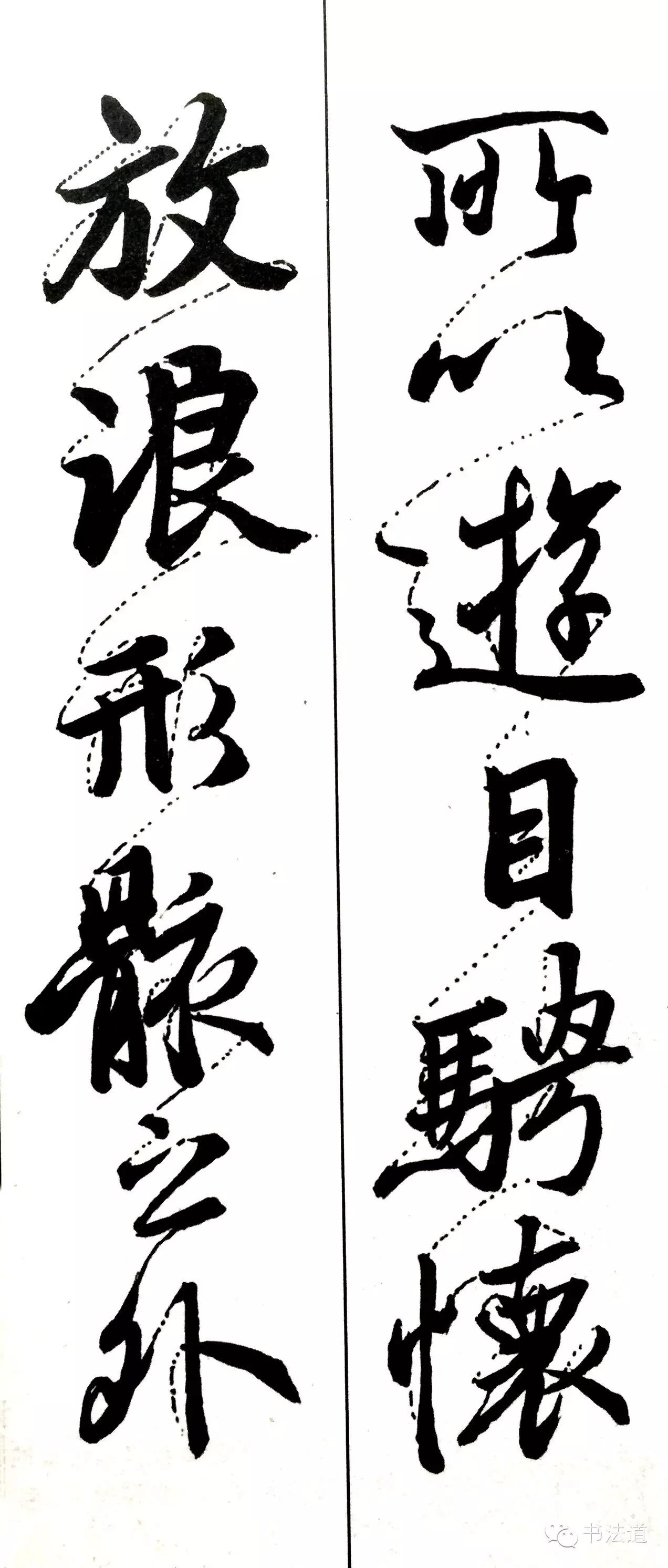 显然,在一幅书法作品中,行与行、字与字不是独立存在的,都有着紧密的联系,是由一个字一个词的个体组成的,康有为曾说:书若人然,须备筋骨血肉,血浓骨老筋藏肉莹,加之姿态奇逸,可谓美矣!可见书法与人一样,同样是鲜活的有机体,字里行间应表现出丰盈的筋骨血肉。表现出气韵的通畅,给观者以遐想和共鸣。这就是书法行气的微妙之处。