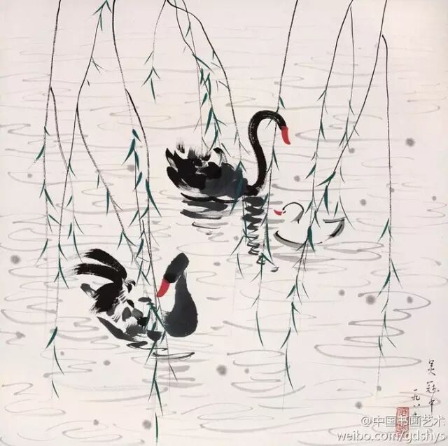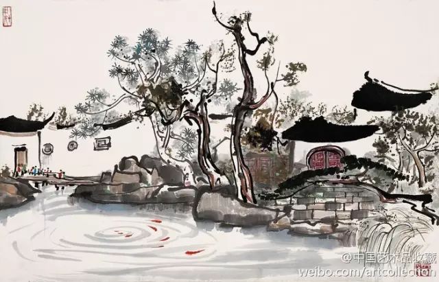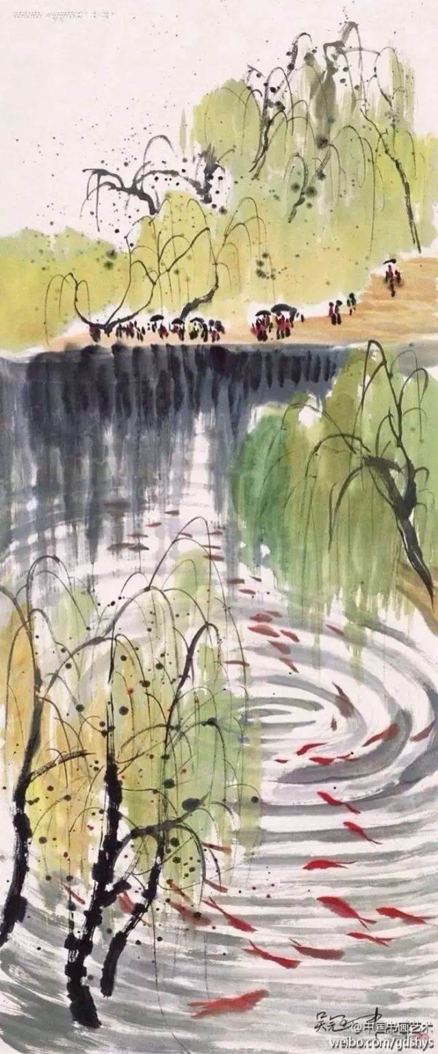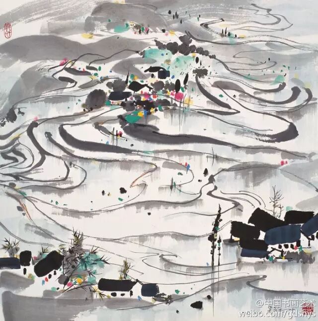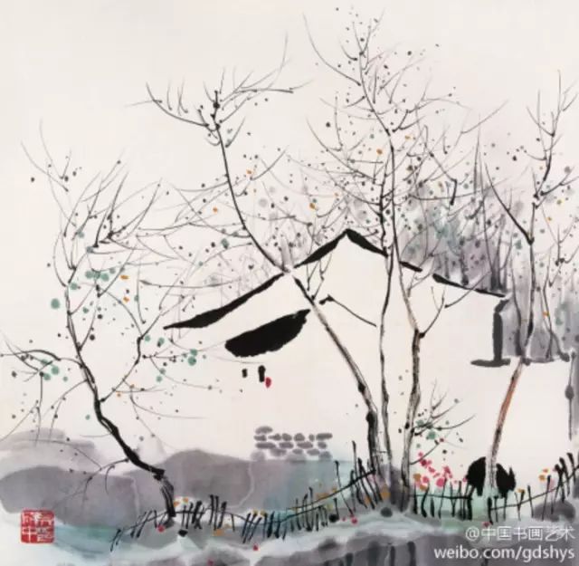 吴冠中综合了西画与中国画之精髓,用笔简练,后期作品常喜以点、线、面造形,创自己独解,诠释自然之美。