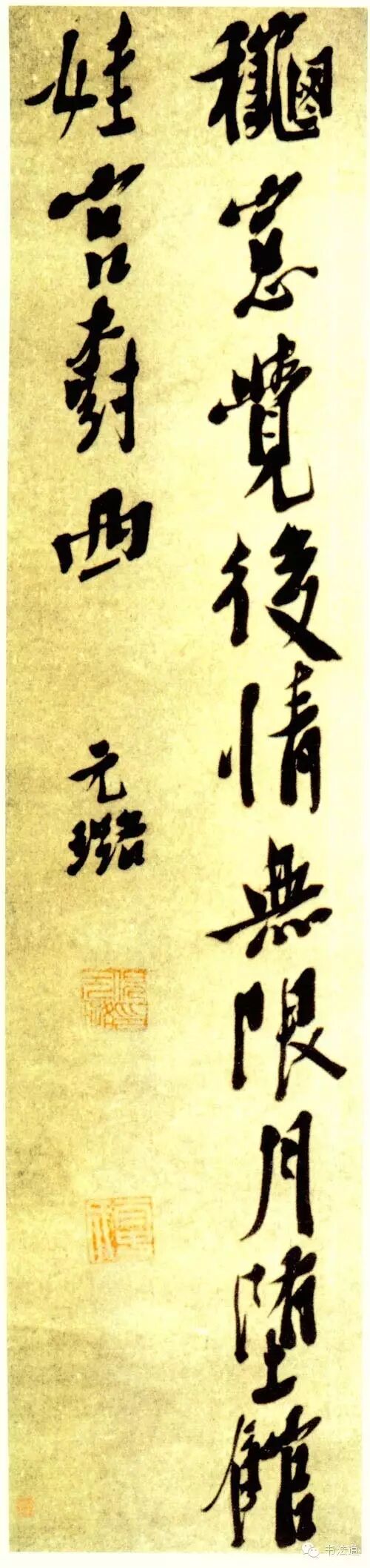 明末的几大书家也是欲力挽狂澜,摆前人书法之束缚。倪元璐也是锐意开拓,积极进的书家,他的书法“尚新理异态”,似枯藤、似盘石,似老树著花,天意盎然,姿媚横生。不受笔笔中锋这制约,而多以侧锋取势,如钢刀斫木,铿然有力。得行草,他的艺术创造精神,去熔铸古今,成就他“寓刚健于婀娜之中,行清劲于婉丽之内,虽外曜锋芒,而筋骨内涵”的崭新书风。他的字,一如其为人,锋崚外露,而劲力蕴藉;结体遒密,而气度宽博。张扬而不矫饰,奇伟而不怪诞。正是这样非凡的气质,他为晚明书坛,注入了一股富有生命力的强劲新风。