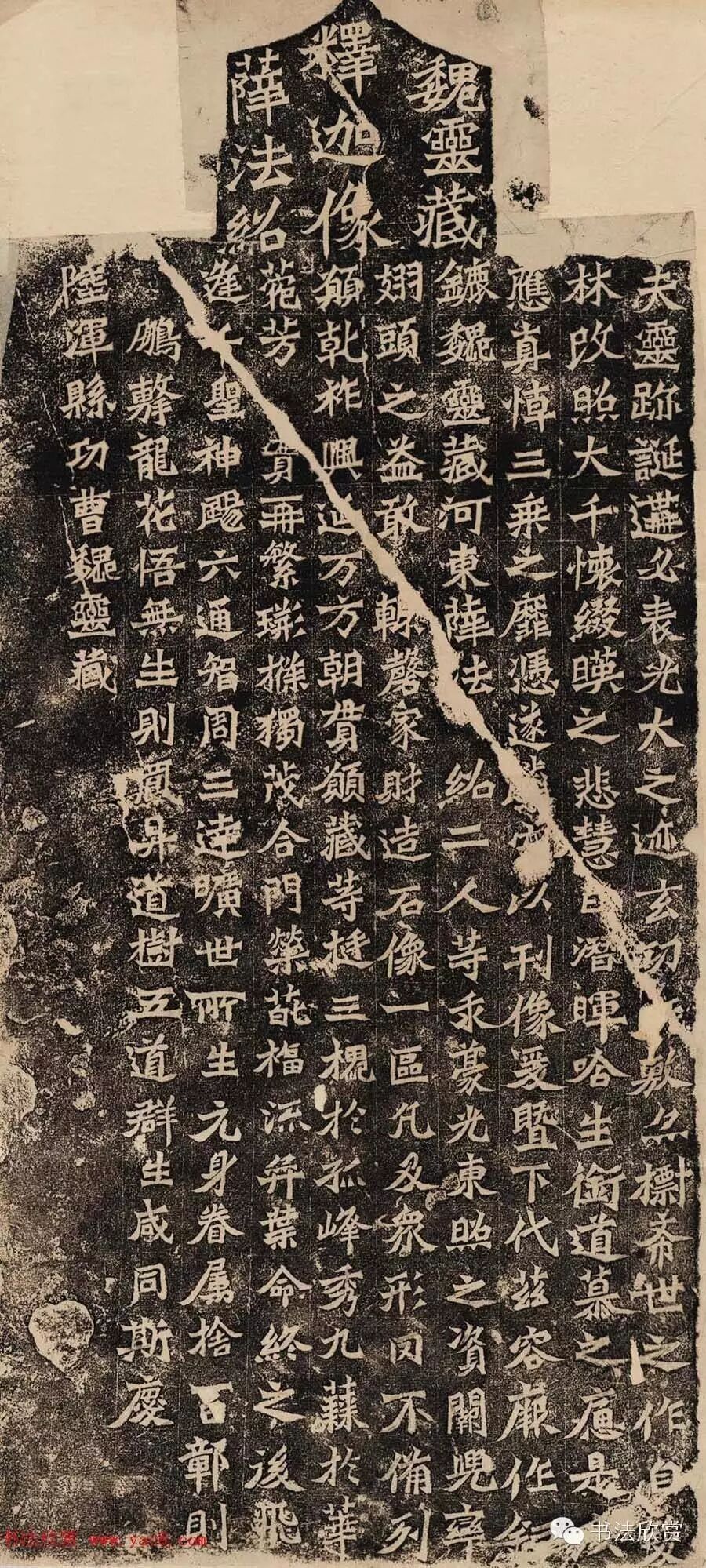 释文:夫靈跡誕遘。必表光大之跡。 玄功既敷。亦標希世之作。 自雙林改造。大千懷綴映之悲。 慧日潛暉。唅生銜道慕之思。 是以應真。悼三乘之靡憑。 遂騰空以刊像。 爰暨下代。茲容厥作。 鉅鹿魏靈藏。河東薛法紹二人等。 求豪光東照之資。闕兜率翅頭之益。 敢輒磬家財。造石像一區。 凡及眾形。罔不備列。 願乾祚興延。万万朝貫。 願藏等挺三槐於孤峰。秀九蕀於華苑。 芳實再繁。荊條獨茂。合門榮葩。福流奕葉。 命終之後。飛逢千聖。神颺六通。智周三達。 曠世所生。元身眷屬。 捨百鄣則鵬擊龍花。悟無生則鳳昇道樹。 五道群生。咸同斯慶。 陸渾縣功曹魏靈藏。